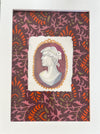 Hand painted in gouache, this original painting depicts cameos carved in carnelian shell or the rare sardonyx shell.  Each painting shows the unique carvings and delicate color differences between each treasure.